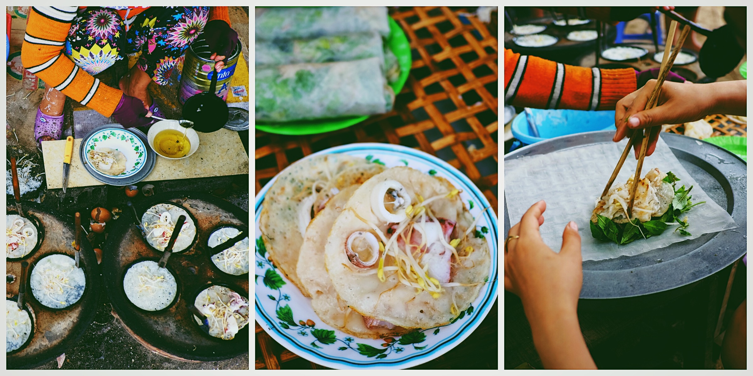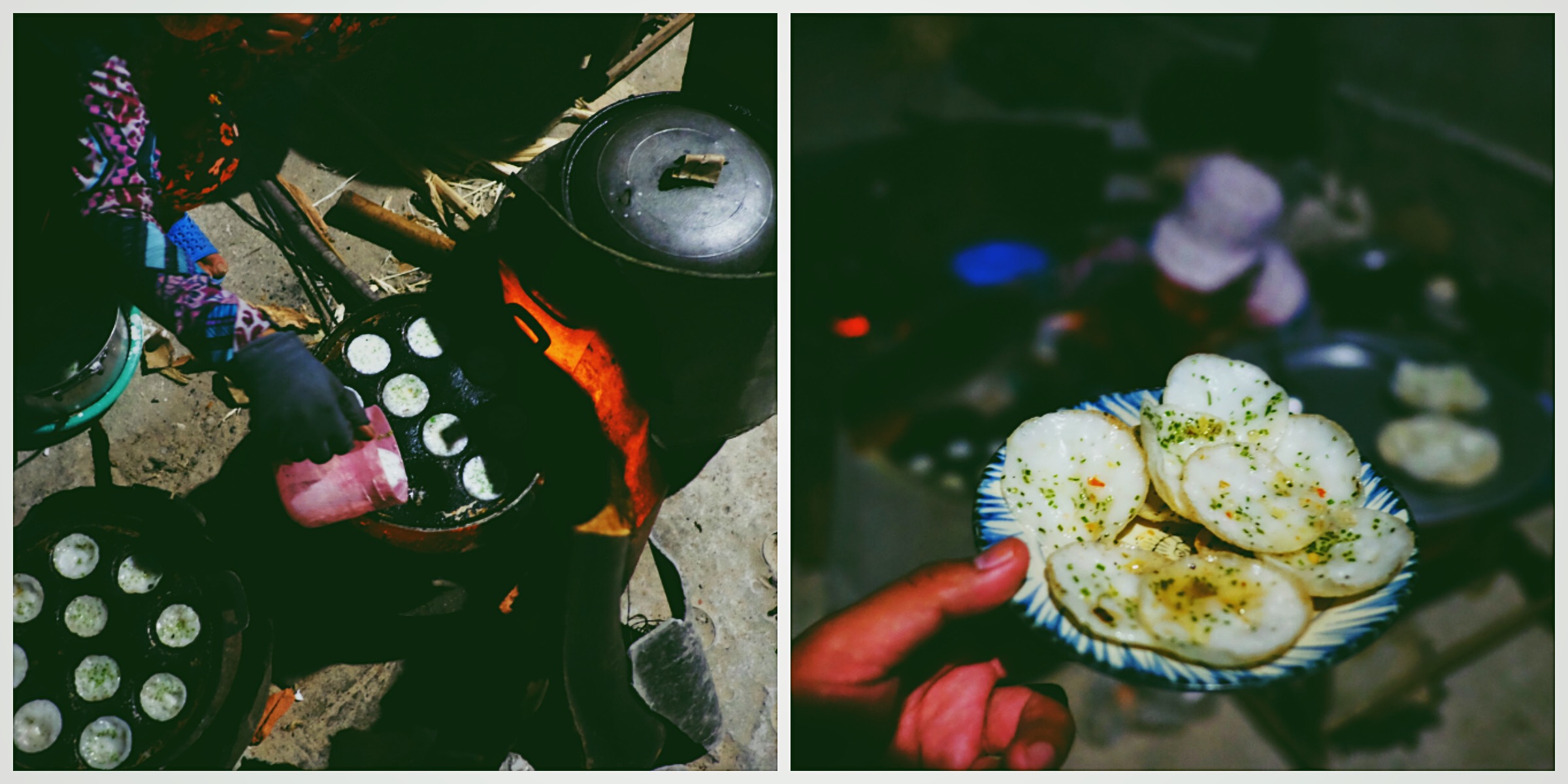 Hay như cảnh ngồi chờ món bánh xèo vỏ nổi tiếng của xứ Bình Định này. Đoạn này là tụi mình vừa ăn bánh xèo vừa tắm mưa luôn vì ko có chỗ để trú mưa. Một bữa bánh xèo nhớ đời :v