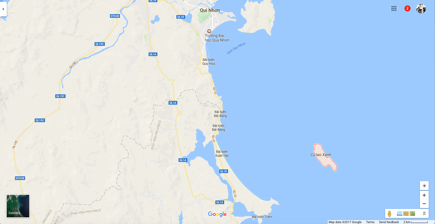 Ngồi không nên rãnh rỗi, mở Maps lên để coi cái Cù Lao Xanh nó nằm ở đâu…. Ủa, gì kì, rõ ràng là nằm gần Phú Yên hơn (khoảng 6km) mà sao Cù Lao Xanh lại thuộc về Quy Nhơn (cách 17km) nhỉ?!?