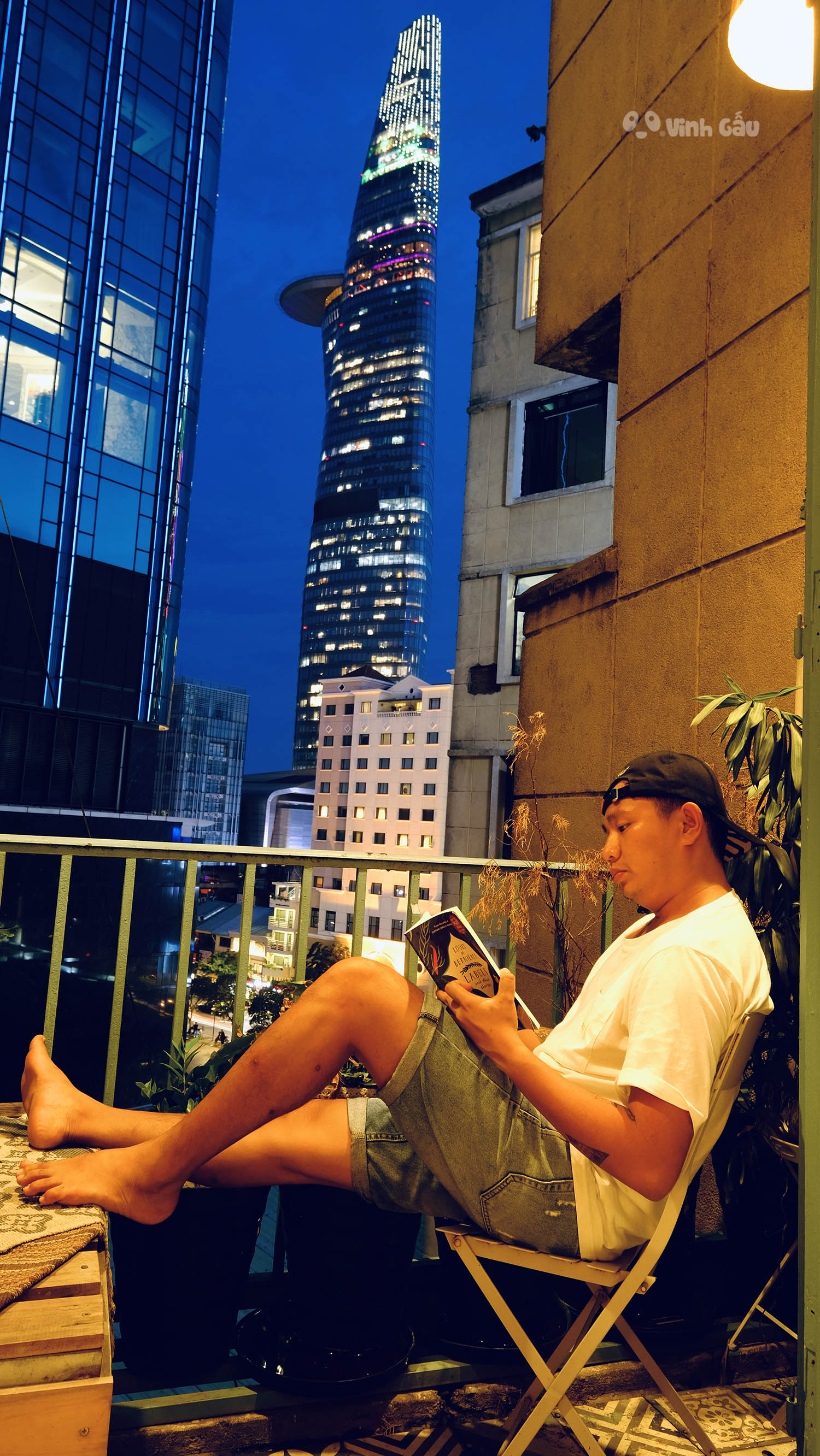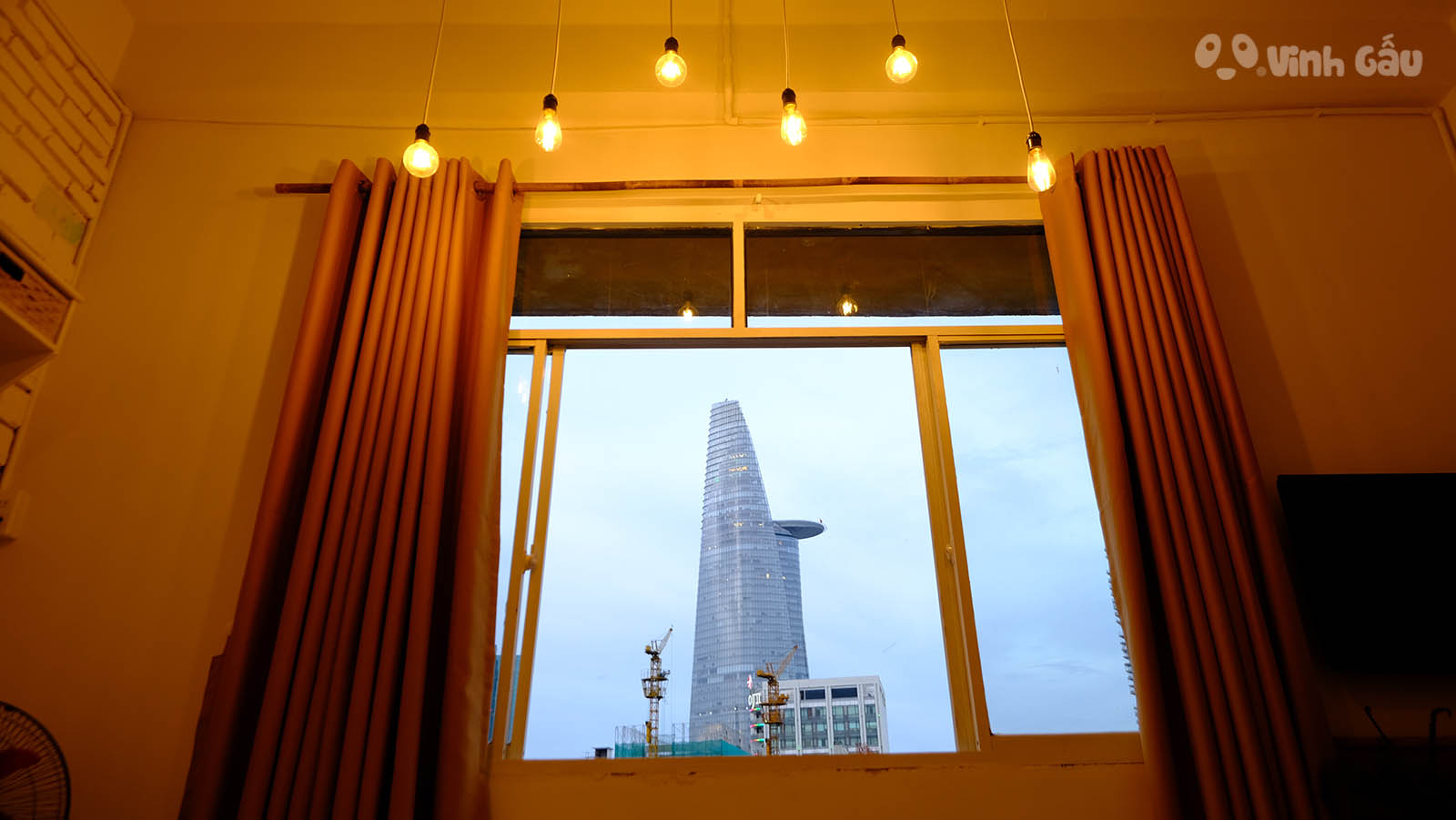 Mình thích cái căn này vì cái view… triệu Đô chứ chả đùa. Mở cửa ra là tha hồ ngắm nhìn tòa nhà Bitexco, ngồi đây mà hất cùn, nghe nhạc chill chill, nhấp vài chén rượu Whisky Nhật nữa thì ối dzồi ôi nó phê pha để đâu cho hết. 😛