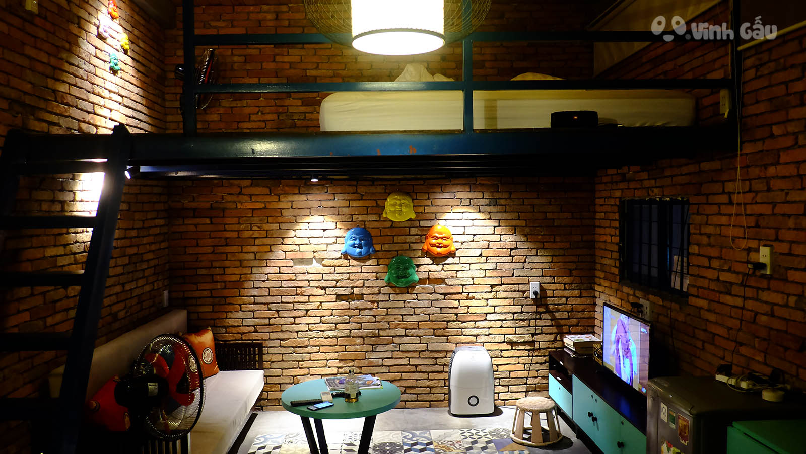Điểm trừ của căn này là lối lên phòng khá là nhỏ, không có thang máy nên nếu bạn mang chiếc vali to bành ki thì thiệt là vất vả để vác lên tới phòng nha.